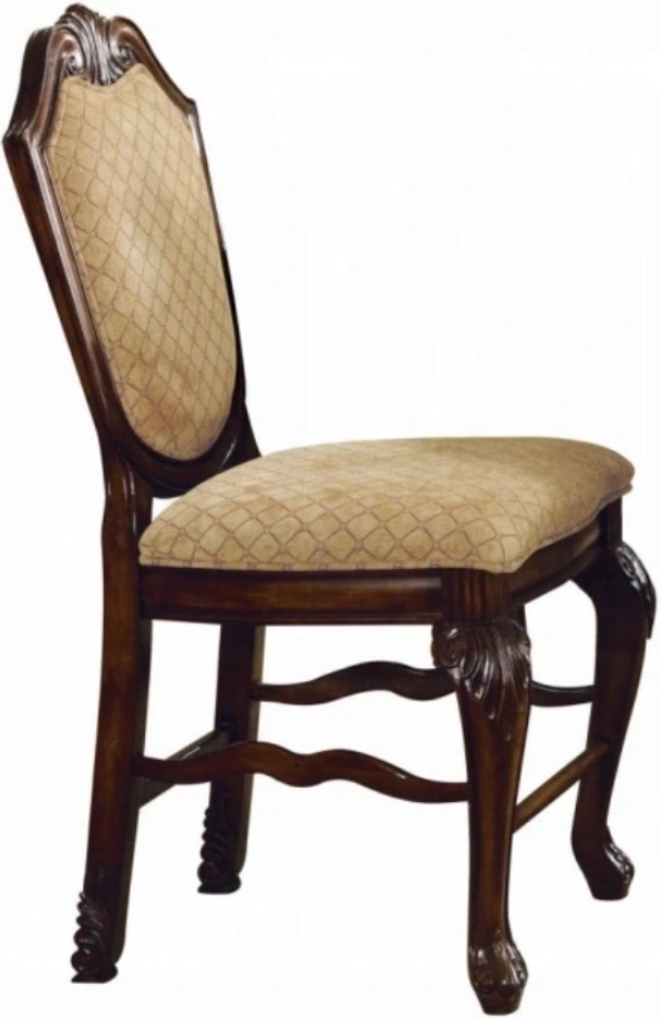 The Chateau De Ville counter height chairs are great for kitchen counters or living room bar tables. This pair of chairs come supported by a fine hardwood frame with two queen anne front legs and two straight back legs. The backrest arches to a peak with a floral-style medallion at the top.Read More