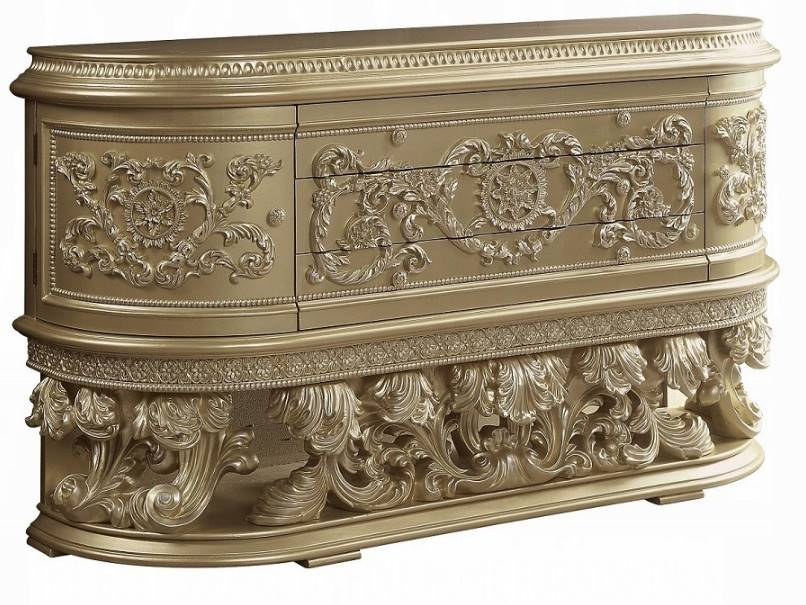 The Vatican Dining Room Collection brings dreamy romantic accents in classic design into your traditional dining room. Intricate trim features vigorous curves of scrolling vines and floral elements, while a champagne gold finish adds a touch of opulence and sophistication.Read More