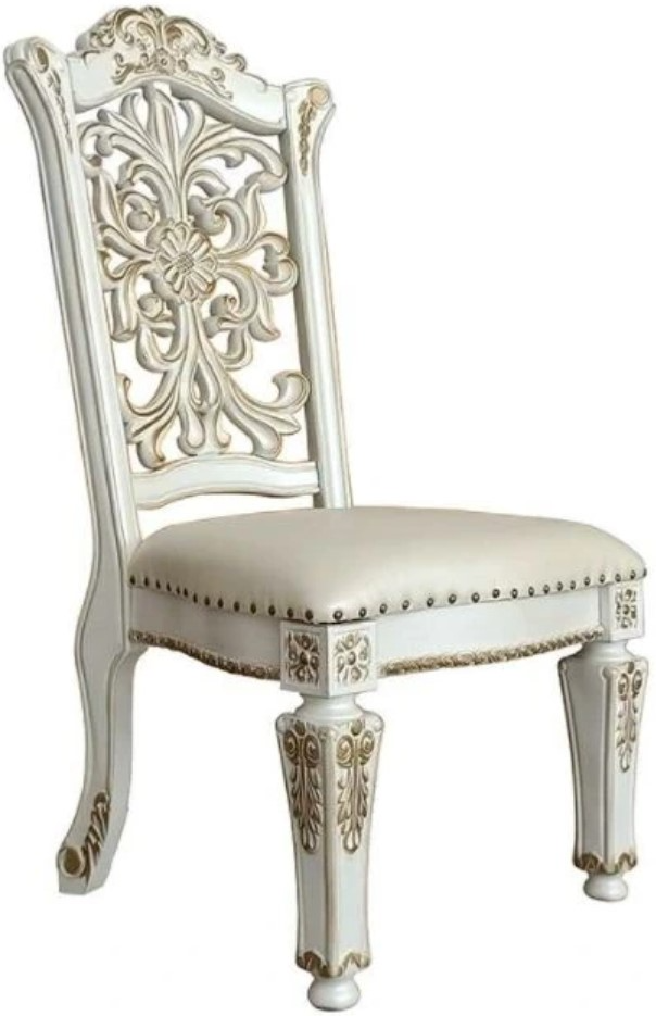 Commanding attention in any space, the impressive design of the Vendom side chair will impress everyone. Adorned with classic elements including curved shapes and leaf molding accents to create an old-world charm. The antique pearl finish is accentuated with hand-brushed gold to make the molding details stand out.Read More