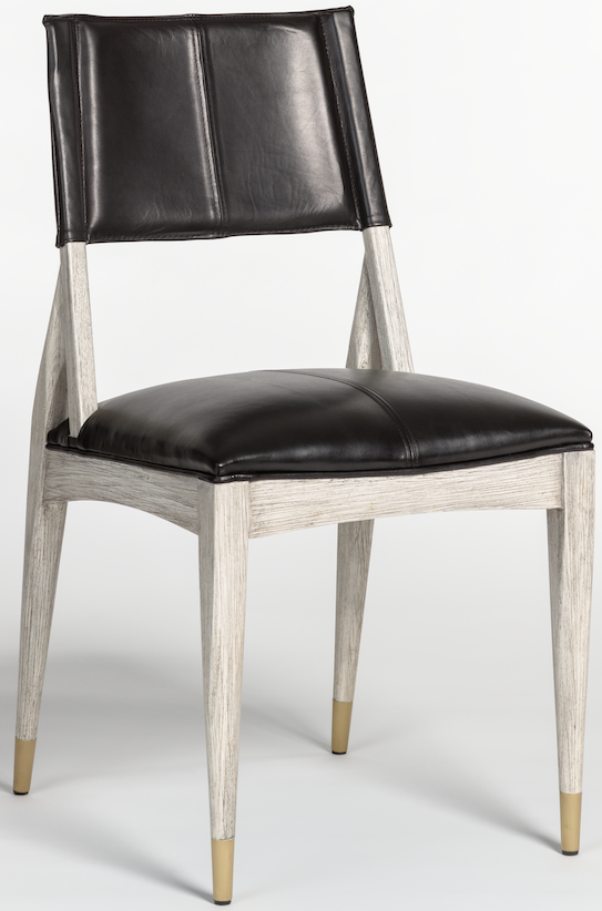 Finn dining chair constructed of beechwood with a brushed ember finish and top grain leather in a black onyx color.Read More