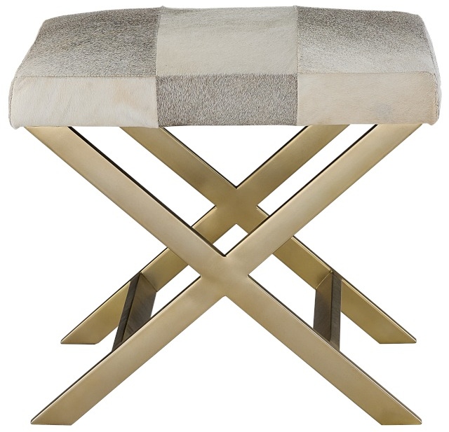 Cross Ottoman features antique brass metal base, leather seating, and can be found in the Hudson collection.Read More