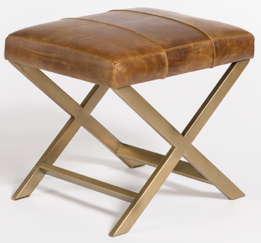 Add a little bit of Glamour with our Hudson ottoman Collection. Available in antique brass or stainless steel chrome, the angles created by the “X” base catch the eye, while the top grain leather upper is richly appealing.