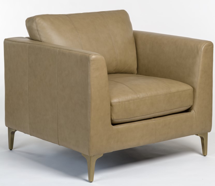 The Milo Marbled Concrete/Light Antique Brass Occasional Chair features track arms, leather upholstery and metal legs.Read More