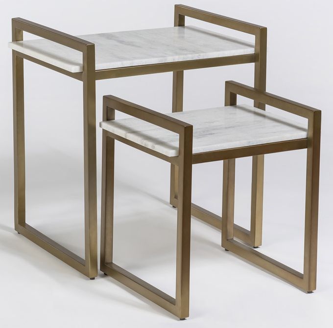 These Santa Barbara Nesting Tables will demonstrate as helpful as they are lovely, no matter what metal finish you choose. Both sets use the tabletop of Cloud Marble, with either Antique Brass or Gunmetal finished metal. They will be sold as a couple, offering beautiful options for end tables, night stands or accent tables.