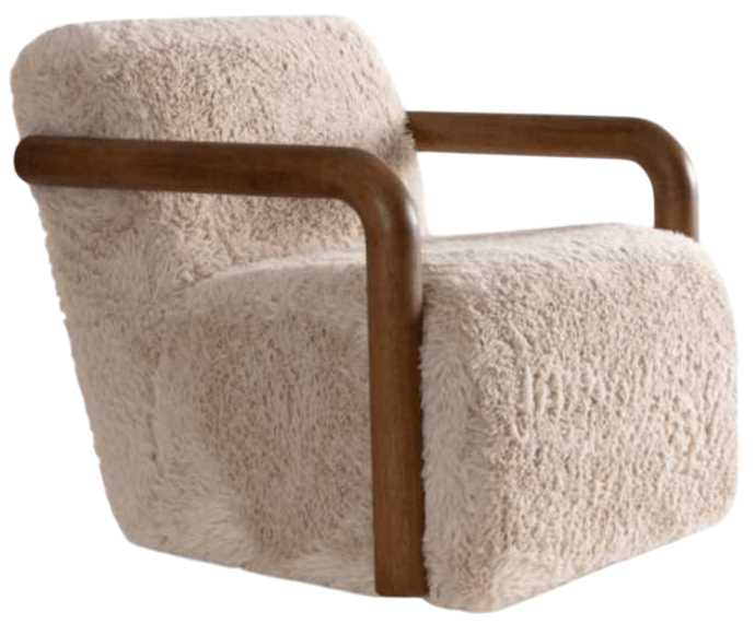 The Alder & Tweed Muir swivel accent chair combines comfort and sophistication with a hidden swivel feature. Upholstered in furry vanilla fabric, it rests on a solid base finished in warm oak. Its sleek silhouette and high-density foam cushions make it a stylish and functional addition to any room.Read More