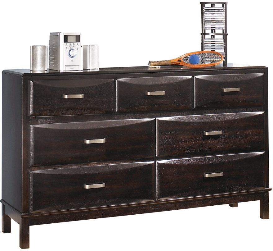 Embolden your bedroom’s style and express your inner self with the Kira 7-drawer dresser. Organizing all your tasteful outfits is a snap thanks to the spacious 7 drawers in 2 sizes. Your bedroom will appreciate the chiseled edges, sheened finish, and bronze-tone hardware as they enhance your room’s contemporary style. Satisfy your desire for sophistication and elegance with this dresser.