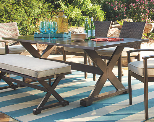 Ashley® Moresdale Outdoor Dining Table with rectangle table top and umbrella holeRead More