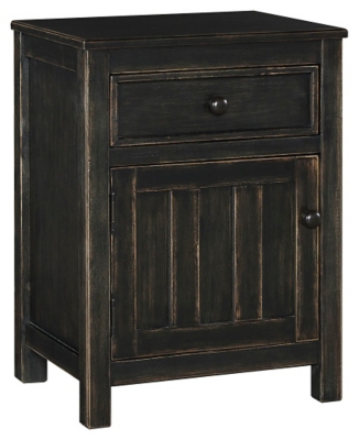 Modern vintage. Better for the wear with its rich rubbed finish for a gently weatherworn aesthetic, This nightstand feels right at home with its minimalist chic profile and heavy distressing. Slatted detailing incorporates rich dimension and character. Combination of drawer and cabinet storage is packed with potential.Read More
