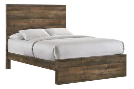 The Bailey King Panel Bed is a bed you'll never want to leave, and you won't have to! The natural wood knots and wood grain design on the surface pair beautifully with this walnut finish. Crafted from solid rubberwood and completed with a distressed finish. Give your room a refresh with this transitional, sleek bed. Box spring required.
