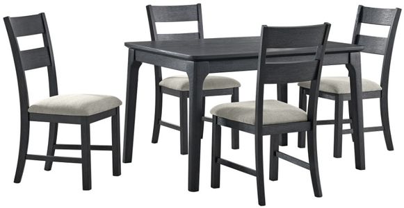 The Elements International Garcia dining set combines modern simplicity with everyday functionality. Featuring a sleek black finish, this set includes a sturdy rectangular dining table and four matching chairs with upholstered seats for comfort. Perfect for casual dining spaces or apartments, it offers style and practicality in one.Read More