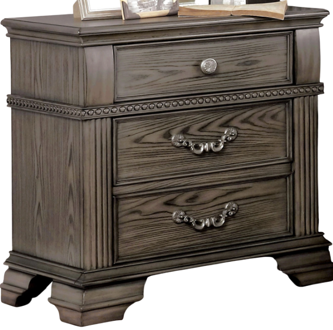 Turn any bedroom into a luxurious getaway with this beautiful ensemble. A unique etched trim is the main visual centerpiece for the nightstand, while traditional elements such as the bracket feet and bold reeded posts combine to create a sense of regality.Read More