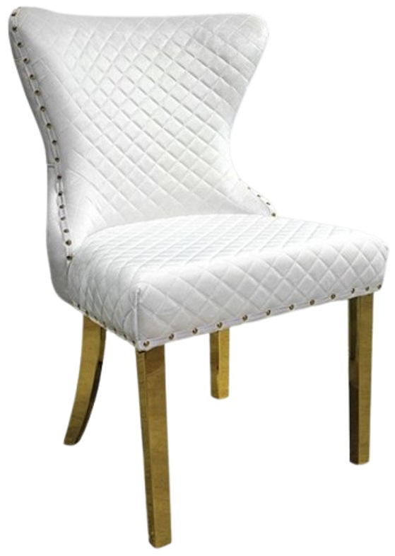 Diamond pattern upholstered chairs with nailhead trim