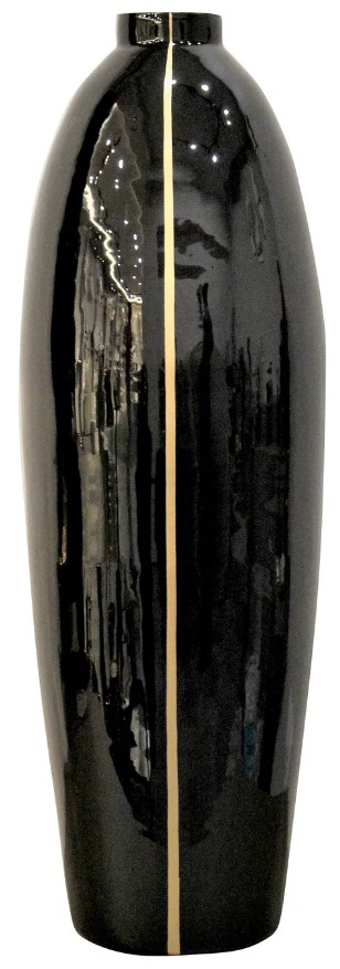 The Onyx collection's small vase is a striking piece, commanding attention with its elegant design. Crafted with a sleek black finish, it exudes sophistication and luxury. The gold detailing adds a touch of opulence, elevating its aesthetic appeal to new heights.Read More