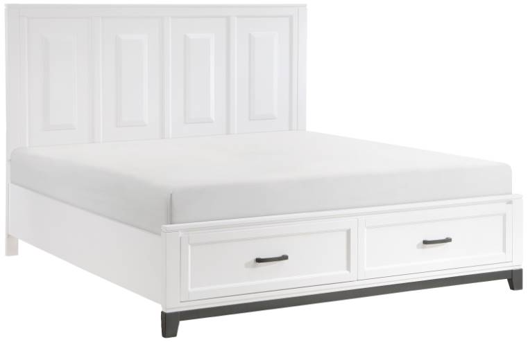 The Garretson Collection blends transitional lines with rustic styling to create an elegant addition for your bedroom. The distinct grain features a 2-tone finish. The California King bed features metal bar hardware on the picture frame drawer fronts of the low-profile storage footboard.Read More