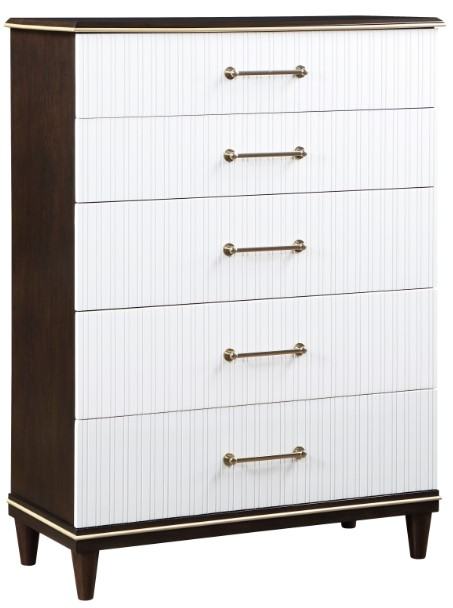 Tasked with executing a design that encompasses the trademarks of contemporary design while including hints at a glamorous lifestyle, the Niles Collection perfects the look. Brushed gold-tone knob and bar hardware radiate from the two-tone white and cherry finish of the collection, the dramatic combination creating an elegant statement of design perfection.Read More