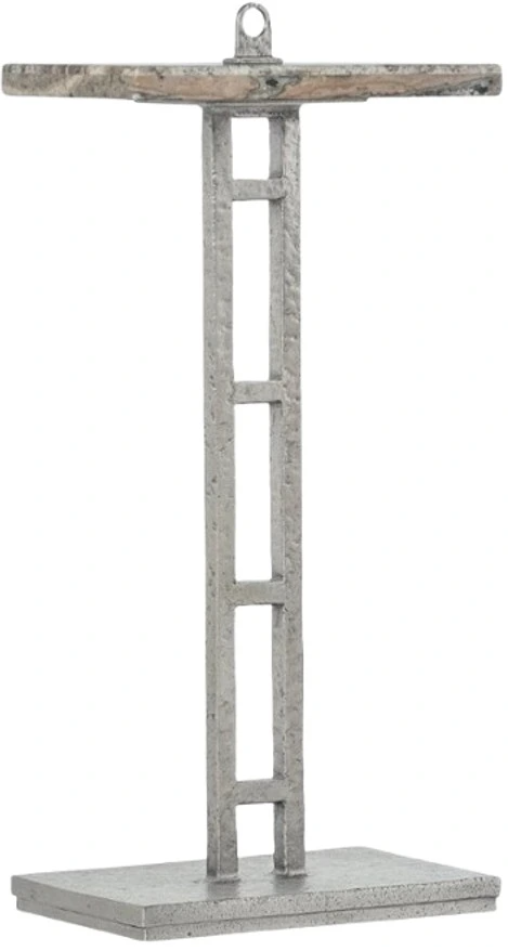Organic meets industrial in the Chapman drink table combining a hand-hammered forged pewter base in a simple geometric design with a honed silver travertine stone top in a compact footprint, making this piece versatile for a variety of spaces.Read More