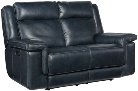 Chunky and comfy in the chic cosmos cobalt finished top-grain leather, the Montel power recline loveseat has it all: smooth reclining motion to the lay-flat position, a power headrest, adjustable lumbar support and a usb port. Tailoring details include a bustle-style back and decorative top stitching.Read More