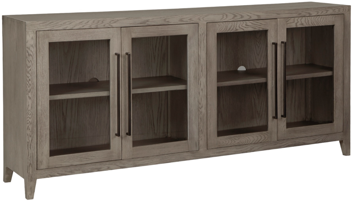 Earthy yet elegant. Simple yet so sophisticated. Like a work of modern art, this accent cabinet is open to interpretation. A great character piece for a dining room, entryway or living area, this glass-front storage cabinet simply wows with ultra-clean lines, light wire-brushed effects and a tasteful touch of pewter-tone sheen.Read More
