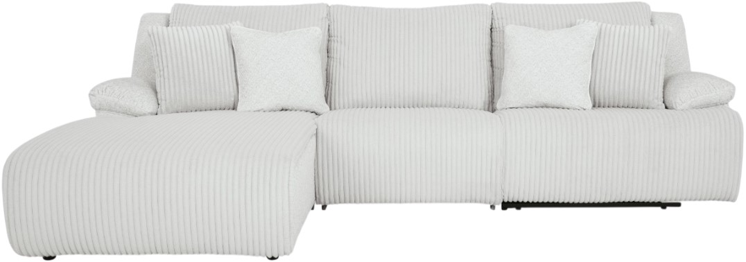 Includes 3 Pieces: Left-arm facing press back chaise, armless chair and right-arm facing recliner
